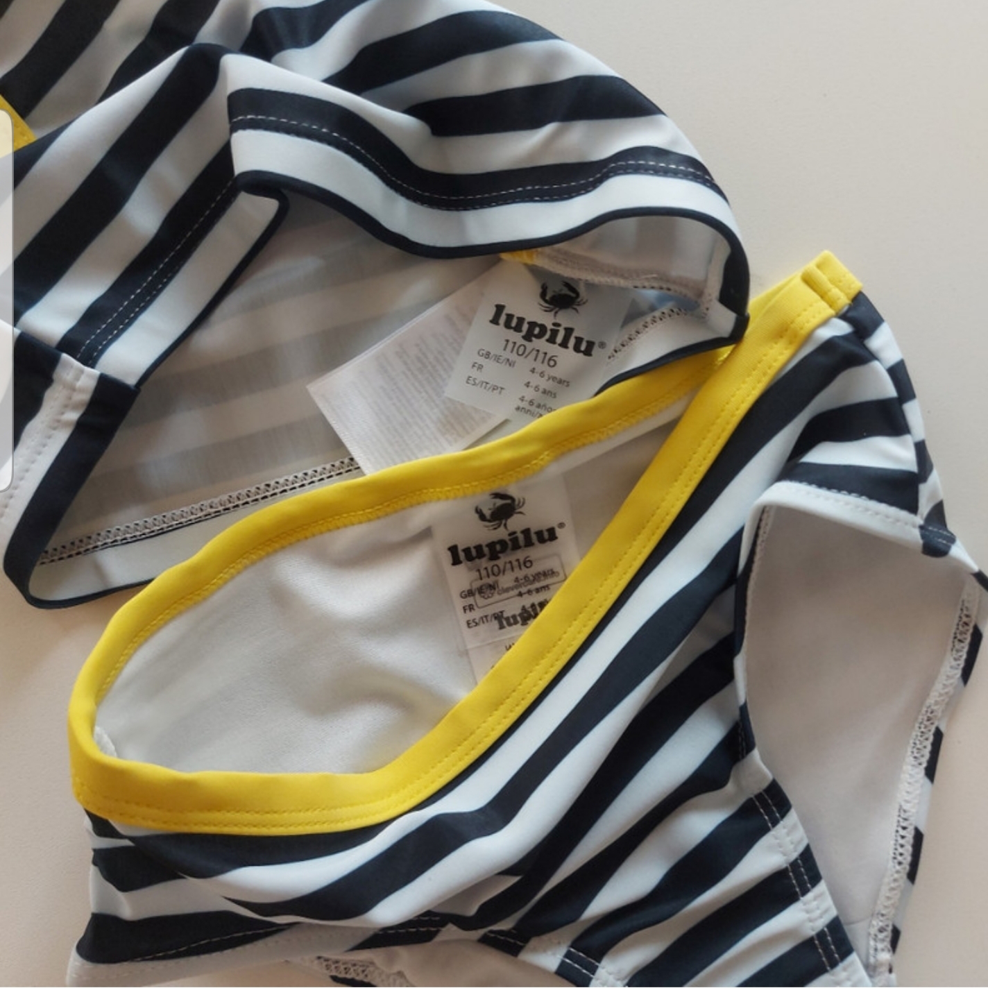 طرح زیبای مایو محصول شرکت لیدل (lidl) آلمان ایده آل برای ساحل و استخر مدل دو تیکه بند سرشان ثابت دارای لیبل سلامت ضد حساسیت پوستی دوخت بسیار عالی کشسانی دارد متریال ۸۰پلی استر ۲۰٪الاستان