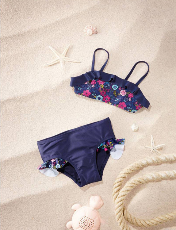 ست مایو دو تیکه دخترانه از برند لوپیلو ضد حساسیت های پوستی است و مناسب دخترانی است که پوست حساسی دارند و هر جنس پارچه ای را به عنوان مایو نمی توانند استفاده کنند. رنگ زمینه مایو دخترانه برند لوپیلو کد ۳۷۵۲۳۹ سرمه ای تیره با طرح گل های ریز صورتی و سرخابی دخترانه ای است و مدل سینه نیم تنه و همچنین دور ران بیکینی دارای چین ریز است. این مایو دوخت بسیار عالی دارد و همچنین دارای کشسانی است و به همین علت استفاده و پوشیدن آن بسیار راحت است و به تن سبک می باشد. متریال استفاده شده در مایو دخترانه برند لوپیلو کد ۳۷۵۲۳۹ به صورت ۸۰٪ پلی استر و ۲۰٪الاستان می باشد.