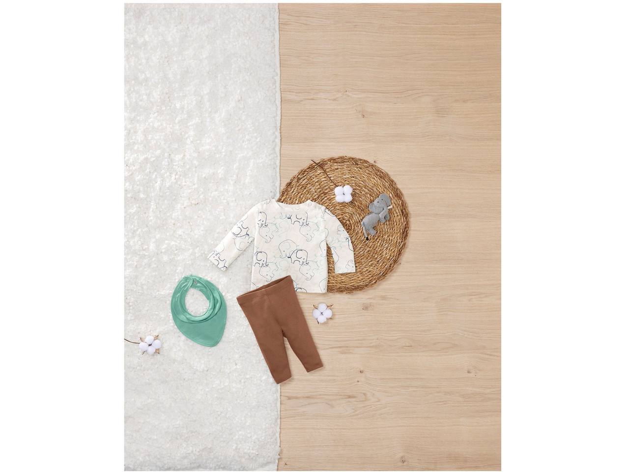 جنس پارچه نخ کاملا ارگانیک قسمت شانه دکمه دو ردیفه فشاری جهت راحتی هنگام پوشیدن طرح چاپی مدل یقه گرد محصول شرکت لیدل ( LIDL ) کشباف نازک دور یقه رنگ زمینه بلوزشیری با طرح چاپی فیل رنگ زمینه شلوار قهوه ای شلوار مدل جذب و اندامی بسیار راحت و با لطافت در تن دارای نشان استاندارد OEKO-TEX قابلیت کشسانی دارد متریال ۱۰۰٪ نخ