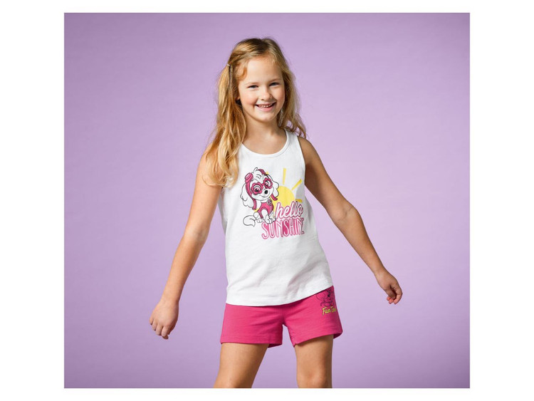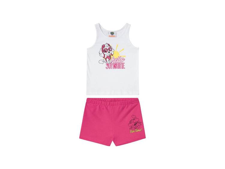 جنس نخی و لطیف محصول شرکت لیدل(lidl) آلمان رنگ زمینه تاپ سفید رنگ زمینه شلوارک صورتی مناسب فصل بهار و تابستان تاپ دارای طرح چاپی مدل بند تاپ پهن کشسانی دارد متریال شلوارک : 60٪ نخ-40%پلی استر متریال تاپ: 100% نخ