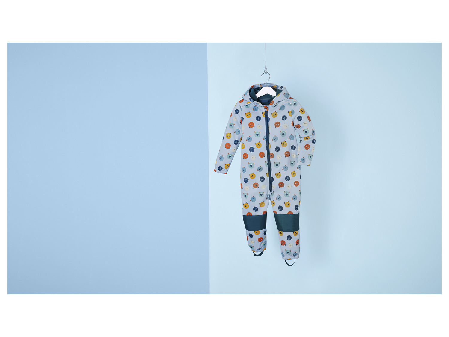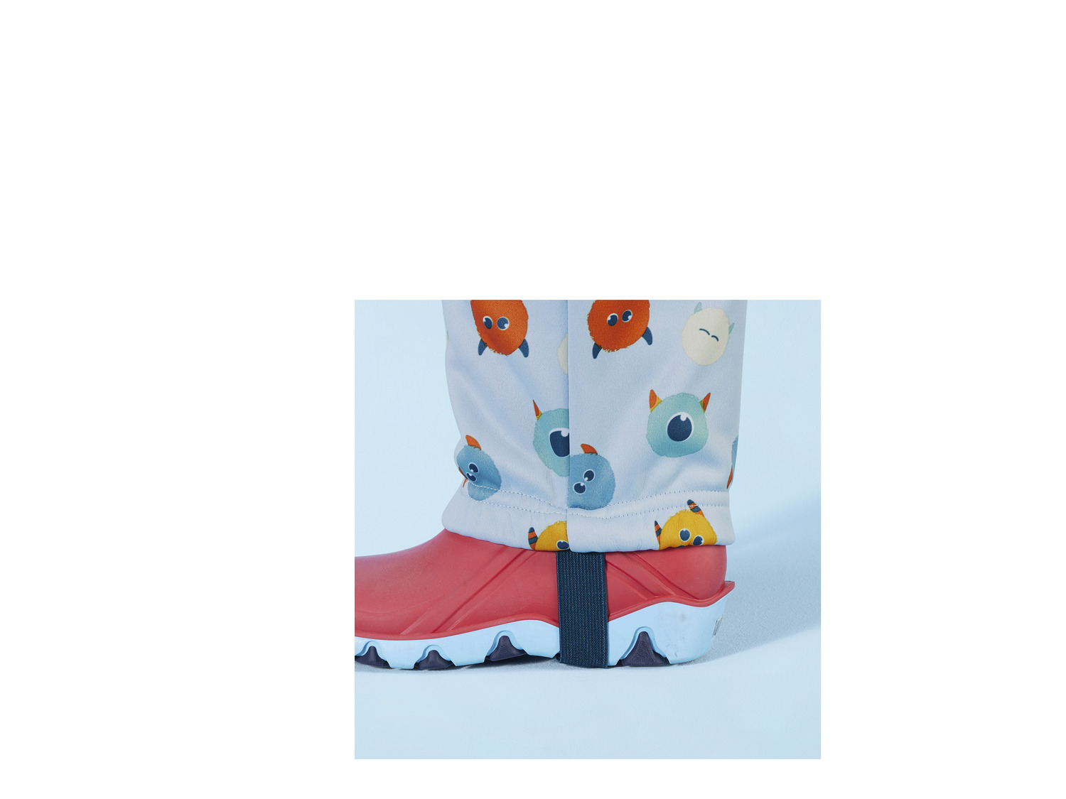 محصول شرکت لیدل (LIDL)آلمان جنس رویه ساف شیل با ضخامت متوسط پوشش داخلی پلار گرم با تراکم متوسط محافظت در برابر نفوذ آب و باد دارای نشان استاندارد OEKO-TEX جلو تمام زیپ با محافظ چانه دارای کلاه جانبی ثابت فاقد جیب جانبی زیپی قابلیت کشسانی اندک دارد دارای کش پاشنه گیر دور مچ و دمپا و قسمتی از کلاه کشی لایه داخل کلاه پلار قسمت زانو پارچه تقویت شده نوار شبنما در قسمت جلو و پشت رنگ زمینه آبی روشن طرح دار دور کلاه کشی متریال ۱۰۰ ٪ پلی استر