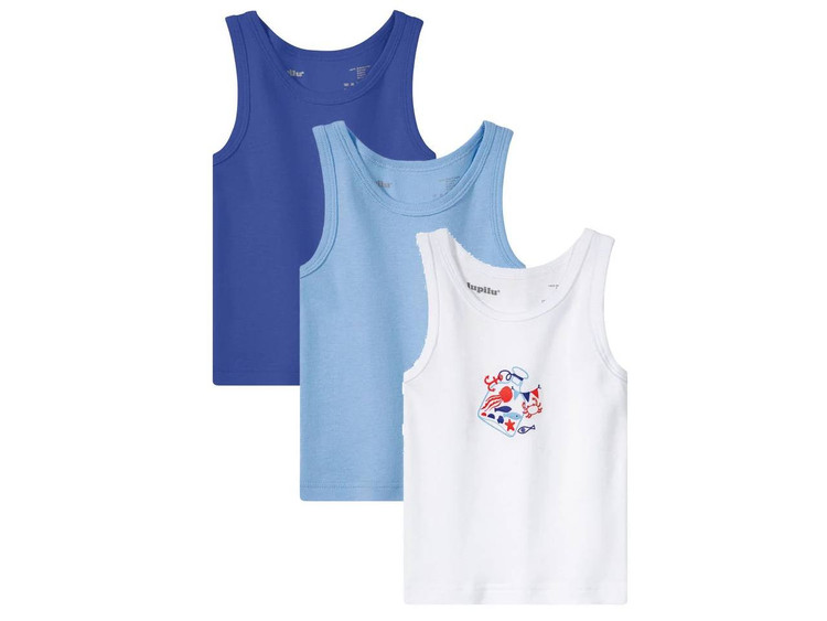 رکابی نخی پسرانه برند لوپیلو کد ۳۷۱۴۷۶۲ از جنس پارچه نخی کاملاً ارگانیک با ضخامت متوسط و قابلیت کشسانی بوده و به دلیل درصد بالای پنبه پوشیدن محصول بسیار راحت است. این محصول در پکهای سه عددی در سه رنگ موجود بوده و دارای مدل بند پهن میباشد. این محصول از برند لوپیلو است که یکی از زیر مجموعه های لیدل (LIDL) میباشد که همواره محصولات باکیفیت را در بازار جهانی عرضه می نماید و به عرضه محصولات با کیفیت و اقتصادی شهرت دارد. این برند به طور اختصاصی به تولید پوشاک بچگانه پسرانه و دخترانه پرداخته و محصولاتی با کیفیت مرغوبی را در بازار جهانی عرضه میکند.